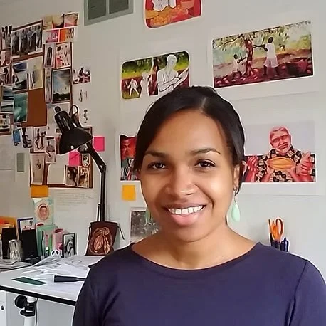 Elizabeth Zunon was born in Albany, New York, and grew up in Côte D'Ivoire, West Africa. As a little girl, she loved to draw, paint, make up dances, and play dress-up. As she grew up, she didn’t really change! Elizabeth now lives in Albany, where she explores a multicultural world through painting, silk-screening, and collage. She is the author and illustrator of Grandpa Cacao, and the illustrator of many books including Bedtime for Sweet Creatures, written by Nikki Grimes; One Plastic Bag, written by Miranda Paul; The Boy Who Harnessed the Wind, by William Kamkwamba and Bryan Mealer; and The Legendary Miss Lena Horne, written by Carole Boston Weatherford.